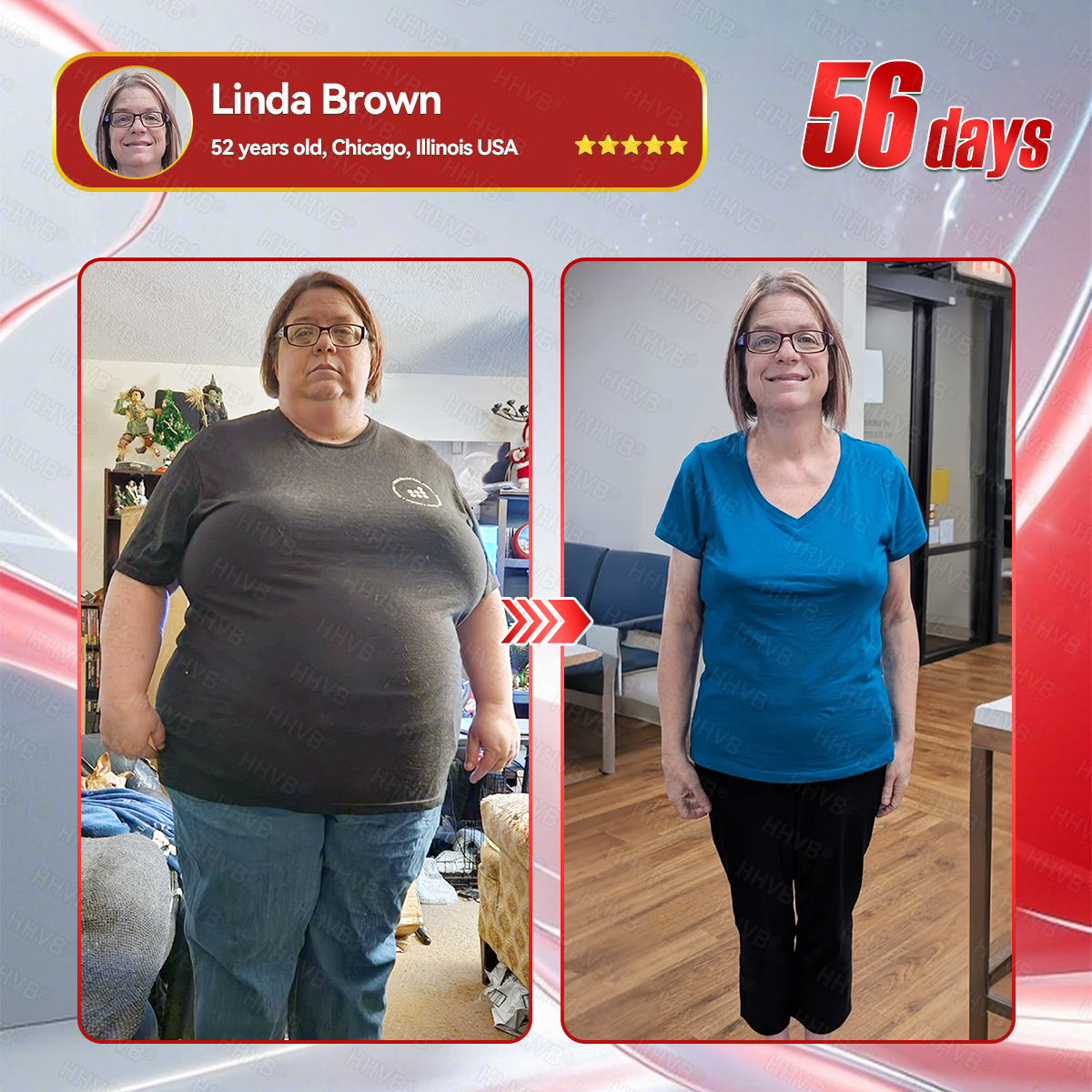 “Working in customer service means wearing a headset all day, sitting at my desk, and handling one call after another.The stress from dealing with upset customers had me constantly reaching for fries, soda, and candy between calls. By the time I got home late at night, I was too exhausted to cook, so I ordered takeout—and the weight piled on fast.My clothes started feeling tighter, my belly pressed against my shirt, and I hated seeing myself on video calls.That’s when I decided to try HHVB® GLP-1 + Collagen Peptides Weight Loss & Firming Oral Solution.It’s not a pill or an injection—just an easy oral supplement. I keep a few boxes in my desk drawer and take one every morning before work.By the first week, I noticed I wasn’t craving snacks between calls anymore.By the second week, my energy and patience improved, even on long shifts.After 55 days, I had lost nearly 40 pounds. My shirts fit better, my steps felt lighter, and even my voice sounded more positive to customers.My coworkers say I look happier, and customers often tell me I sound more upbeat.HHVB® didn’t just help me lose weight—it gave me the energy, confidence, and balance I needed to handle both work and life again.”— Linda Brown, Chicago, Illinois