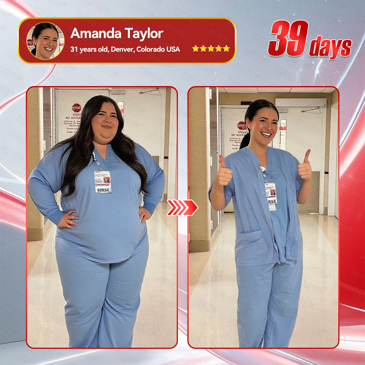 “As a nurse, I work long shifts on my feet with back-to-back patients and barely any time for myself. I used to grab snacks from vending machines, live on coffee, and skip real meals. The weight came fast, my legs ached after every shift, and even a few stairs left me breathless. Then I found HHVB® GLP-1 + Collagen Peptides Weight Loss & Firming Oral Solution—just one sachet mixed with water, that’s it. In the first week, I stopped craving fries and candy during night shifts. By the second week, my sleep improved and I had more energy for my patients. After 30 days, I lost over 50 pounds. It’s easy to carry, simple to use, and now my coworkers keep asking for my secret.”— Amanda Taylor, Denver,Colorado