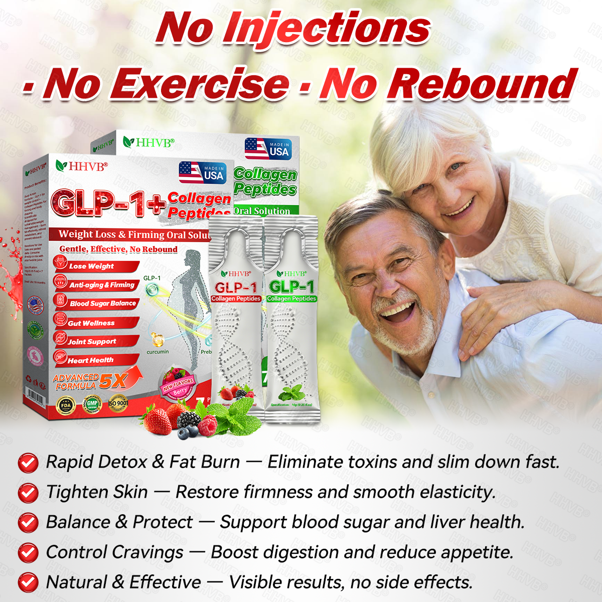 Every box of HHVB®GLP-1+Collagen Peptides Weight Loss&Firming Oral Solution comes with our strict 180-day guarantee.Use as directed and experience visible improvements in your weight, vitality, and overall wellness.